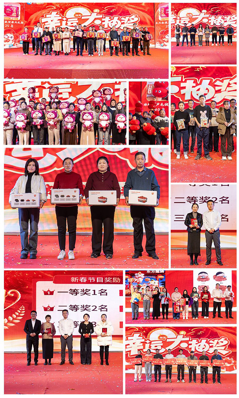 總經(jīng)理講話結(jié)束后,激動人心的頒獎典禮盛大開啟。本次頒獎典禮共設(shè)立了沖刺獎、入職五周年獎、優(yōu)秀員工表彰、集團高管金鑰匙獎等多個獎項,旨在表彰過去一年中為集團發(fā)展做出突出貢獻的個人和團隊。每一個獎項的頒發(fā),都是對獲獎?wù)咝燎诟冻龊妥吭截暙I的高度認可,現(xiàn)場掌聲雷動,充滿了對獲獎?wù)叩淖YR與敬意。此外,集團還為每位員工準備了年終獎,讓大家在收獲榮譽的同時,也感受到了集團的關(guān)懷與溫暖。