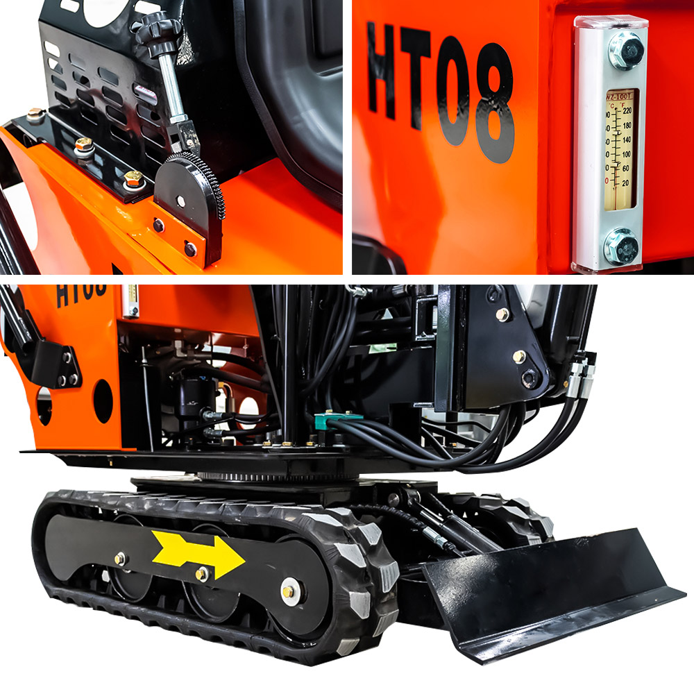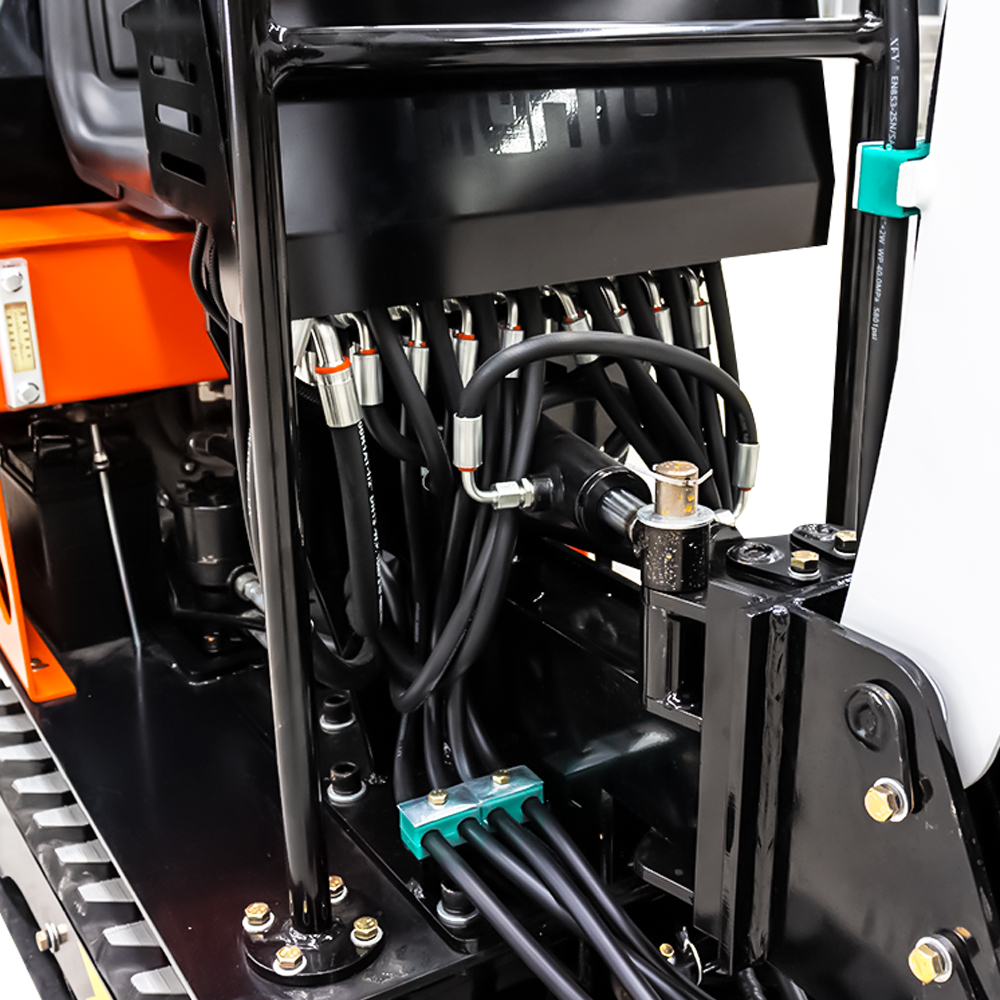 HT08小型挖掘機獨特的大臂結(jié)構設計,操作前管道暢通。 保護蓋可保護管道免遭破壞。