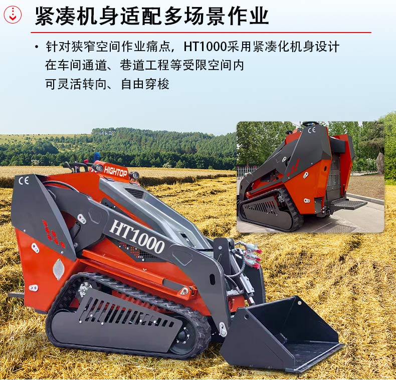 針對(duì)狹窄空間作業(yè)痛點(diǎn),HT1000采用緊湊化機(jī)身設(shè)計(jì),帶鏟斗狀態(tài)下整機(jī)長(zhǎng)度僅2835mm,總寬度1140mm,轉(zhuǎn)彎半徑低至1528mm,在車間通道、巷道工程等受限空間內(nèi)可靈活轉(zhuǎn)向、自由穿梭。不帶鏟斗時(shí)1035mm的總寬度與835mm的軌距,進(jìn)一步提升了場(chǎng)地適應(yīng)性,搭配1065mm的履帶接地長(zhǎng)度與200mm履帶寬度,既能降低對(duì)地面的壓強(qiáng),又能在復(fù)雜場(chǎng)地保持穩(wěn)定行駛,實(shí)現(xiàn)“小機(jī)身有大作為”。