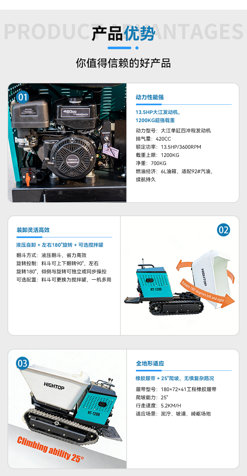 1. 核心動力:13.5HP強勁引擎,1200KG輕松載
