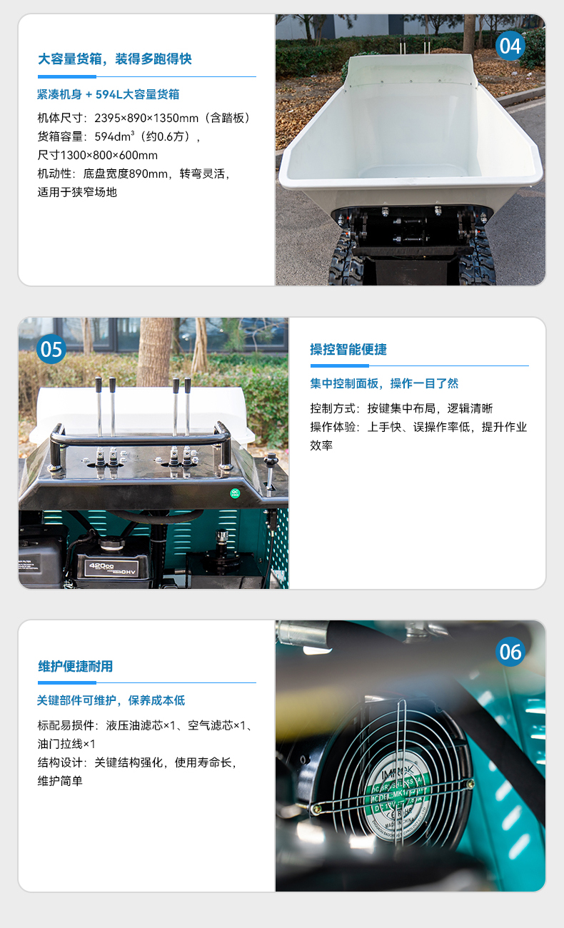 搭載大江420CC強勁發(fā)動機,額定功率13.5HP,專為重載搬運設(shè)計。最大載重1200KG,動力澎湃,徹底告別人力搬運的低效與疲勞。